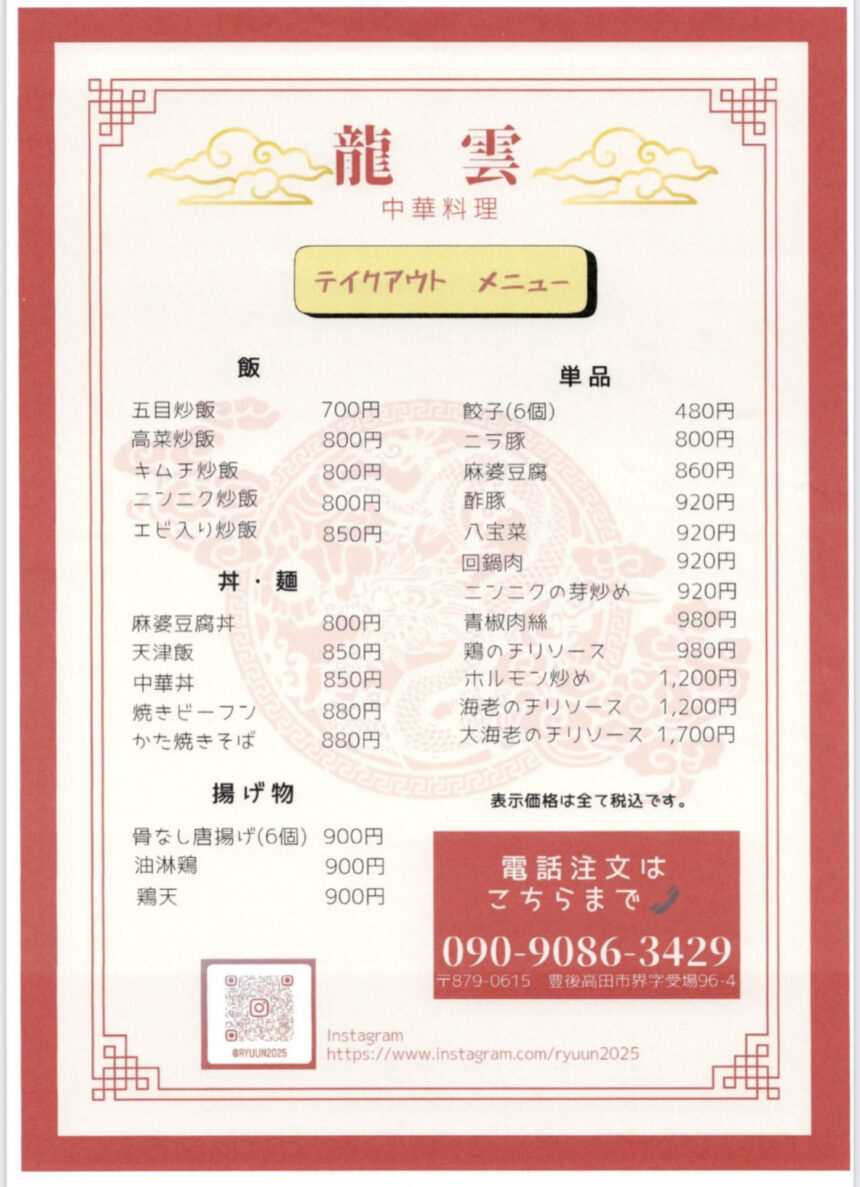 店舗名 中華料理 龍雲
